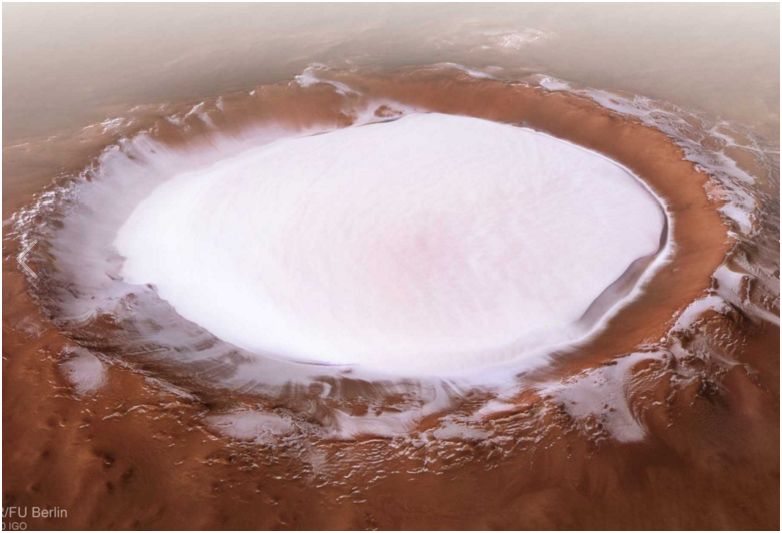 Adaptado de https://www.noticiasaominuto.com.br/tech/749874/fotos-impressionantes-de-marte-revelam-gelo-dentro-de-cratera